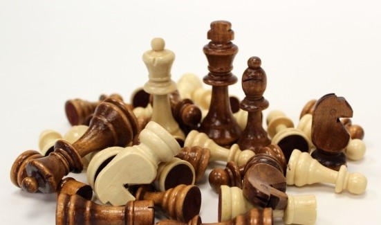 Komplettes Set an Schachfiguren für ein Spielfeld.